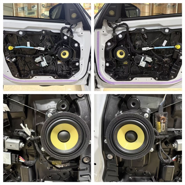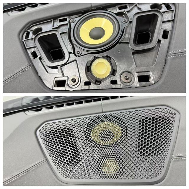 中置喇叭选用劲浪黄盆IS BMW 100K一对,填补原车中置声场空缺,让人声定位更精准;后门同样搭载劲浪黄盆IS BMW 100KL套装喇叭,与前门形成呼应,确保后排乘客也能拥有一致的听觉体验;后环绕喇叭换装劲浪黄盆IS BMW 100K套装,进一步拓宽声场维度,打造沉浸式环绕音效。