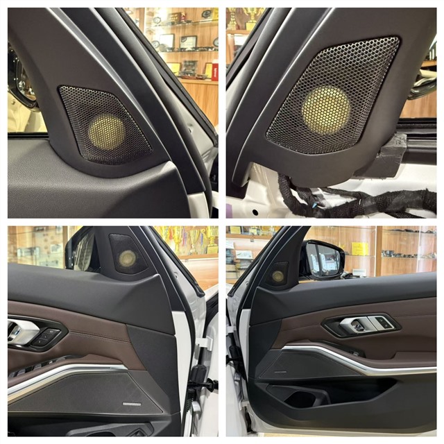 宝马330Li原车标配的哈曼卡顿音响,看似自带豪华光环,实则难以满足追求高品质听觉体验的需求。多数车友不知,哈曼卡顿分为整车配套与后装专业升级两个版本,原车配套的喇叭在做工、用料上均有明显缩水,再加上原车16只喇叭的功率需求较大,原车供电系统难以支撑,导致音质表现平平,存在较大提升空间。为此,泉州海林针对这台宝马330Li,量身定制了一套无损音响升级方案。