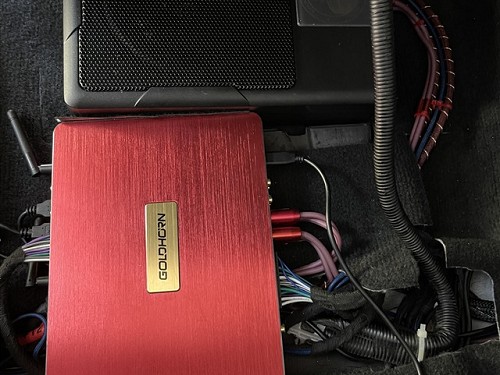 本次的音响升级,前声场使用诗芬尼S62两分频套装,诗芬尼有着出色的人声演绎,播放的音乐十分耐听,让人不容易产生听觉疲劳。高音、中低音无损安装,中低音安装时还加装了美音圈,能填充原车内饰板和喇叭间的间隙,防止音效扩散,让声音集中向车内传出,吸收车门噪音,提升喇叭音质的功效。