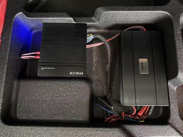 在器材安装环节,技师充分利用车辆尾箱的空间优势,将弗莱德FP-6处理器和弗莱德FC-1低音功放巧妙安装在尾箱凹位处,这种安装方式不仅避免了占用宝贵的储物空间,还能借助凹位的结构提升器材的散热性能,保证设备稳定运行。
