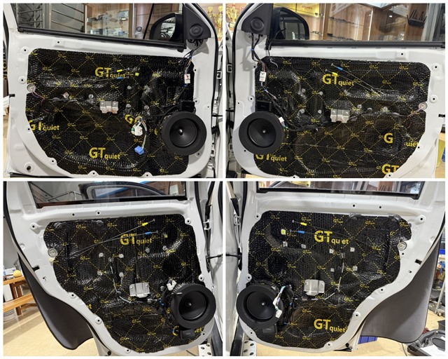 四门采用GT隔音材料进行双层处理,有效阻隔行驶中的风噪与共振。密闭的门板如同音箱箱体,让中低频更扎实,还原音乐本色。然后把另外一对劲浪ASE-165高音喇叭安装在车门内饰板上,与同安装在车门上的中低音喇叭距离较近,有利于中高频声音的衔接,使声音过渡更加自然流畅,有助于营造出和谐统一的车内声场。