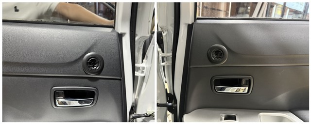 车门三角区经过精准倒模,嵌入劲浪ASE-165高音喇叭。此举不仅提升声场高度,使音像定位更精准,还与原车内饰无缝融合,保留美观性。