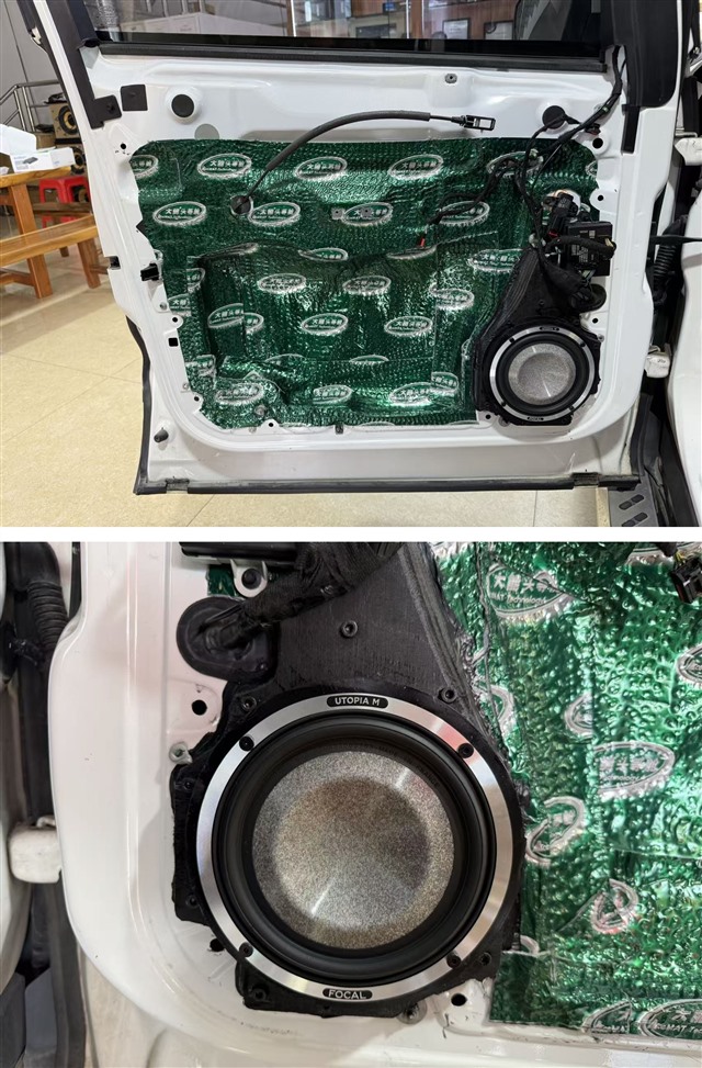 针对前声场中低音单元的安装,制作木制垫圈固定喇叭,避免行驶过程中因震动导致喇叭位移,保障音质稳定性;另一方面,垫圈将中低音单元适度 “突出” 安装,使其正面发音不受门板内饰板的阻挡,发音直接而无损失。