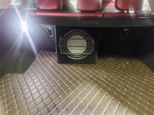 为让音乐在低频部分的表现更加出色,我们的改装师还加入了一只劲浪SUB25A4超低音。并添加一台弗莱德FC-1单路D类功放进行驱动,其采用完全平衡的拓扑结构,具有低功耗、高效率的特点,发热量少;饱满的低频能量释放,诠释出超低音的低频精髓。