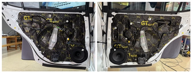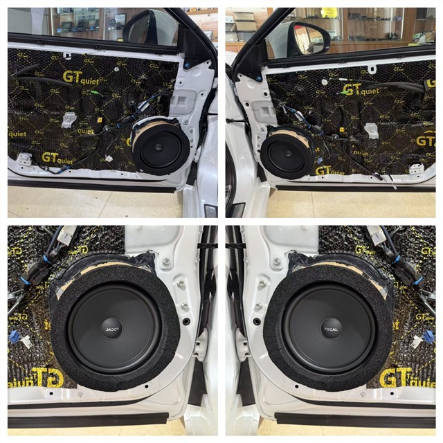 前门选用劲浪 ISU200 两分频喇叭,作为劲浪旗下的经典型号,其精准的声音还原能力备受认可。高音单元安装在仪表台两侧原位,确保声场高度与指向性,让高音清晰通透、穿透力十足;中低音单元则适配前门板原位安装,在做GT双层隔音之下,中低音更呈现出饱满浑厚的中低频质感。