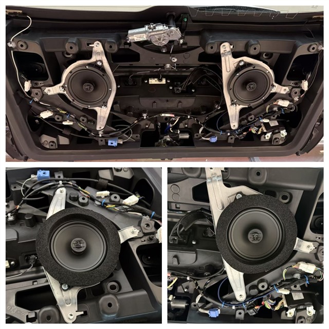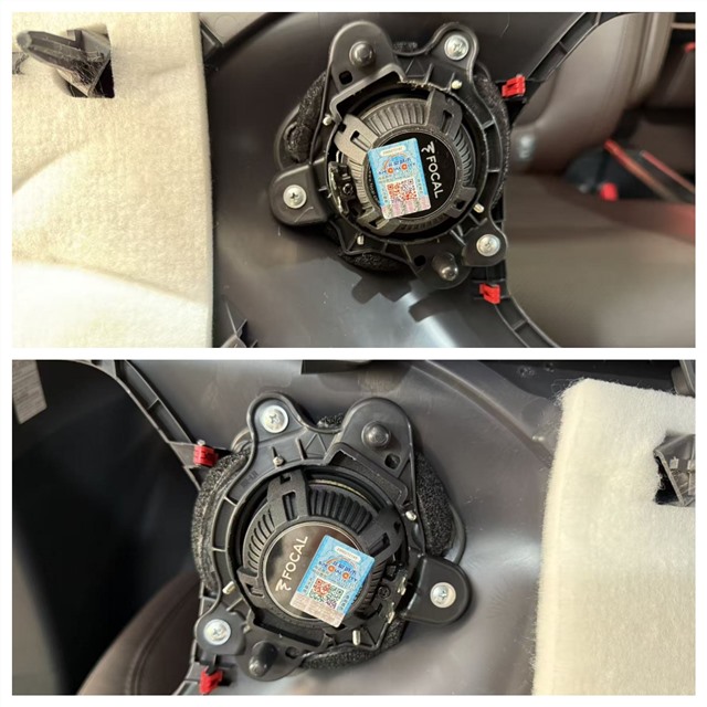 中置喇叭选用质感出色的劲浪亚麻盆中音,弥补了原车声场中频缺失的问题,让人声表现更具感染力。后门的劲浪亚麻盆中音与后尾门的劲浪ACX-165同轴喇叭均采用原位安装方式,既保证了音响系统的协调性,又不破坏车内原有布局。