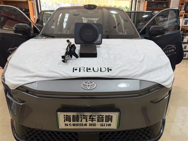泉州汽车音响改装/丰田BZ3X音响改装弗莱德FP-8A处理器+弗莱德FED-800超薄低音/泉州海林音响改装